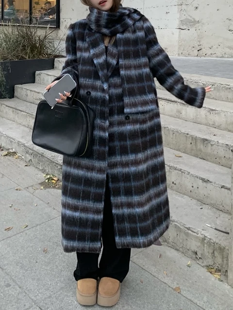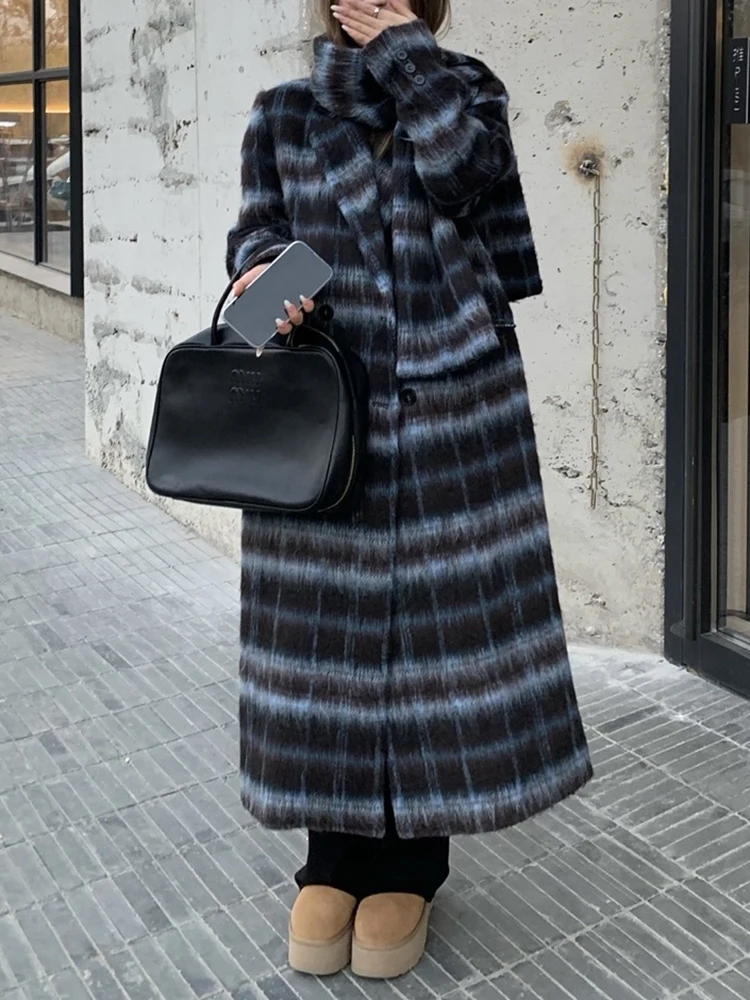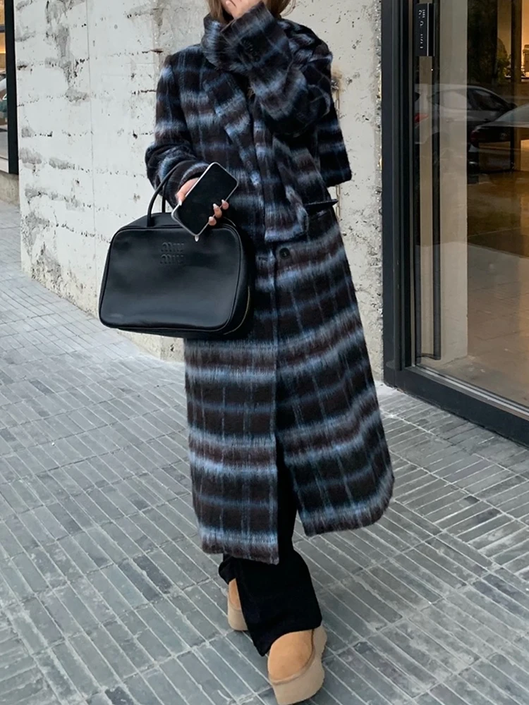 The [sbrand] Plaid Spliced Woolen Coat blends timeless outerwear design with modern elegance. Its classic plaid pattern, double-breasted tailoring, and comfortable long silhouette make it a stylish and practical coat for women during colder seasons.