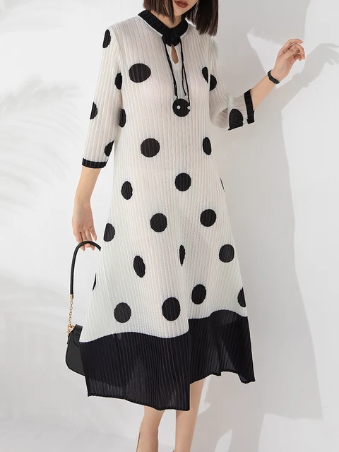 Add timeless charm to your wardrobe with the [sbrand] Pleated Polka Dot A-Line Dress. Designed with a classic polka dot print, elegant pleated texture, and a flattering A-line silhouette, this dress blends vintage inspiration with modern fashion. The comfortable pullover design and stylish patchwork details make it a versatile choice for everyday wear and special occasions.