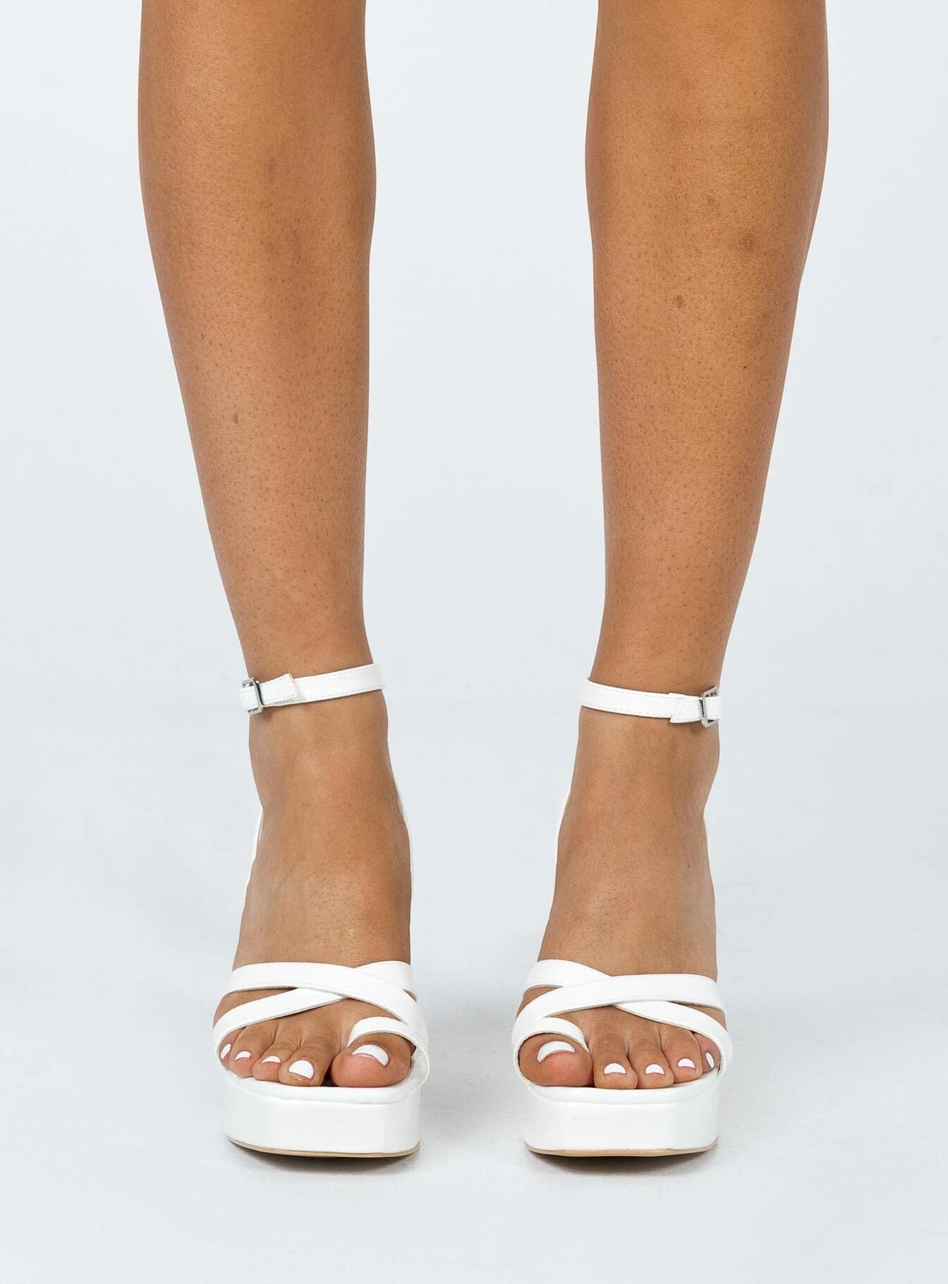 The [sbrand] Heels combine bold design with comfort, making them the perfect choice for those who want to elevate their style while enjoying a stable, supportive fit. Featuring a cross strap upper, ankle wrap strap, and silver-toned buckle, these platform heels provide a sophisticated, modern look.