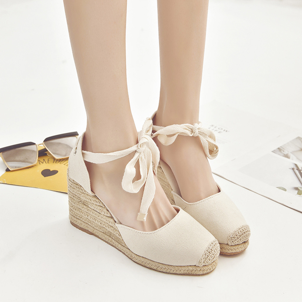 [sbrand] Women’s Cross-Strap Platform Wedge Sandals Casual Spring High Heel Pumps